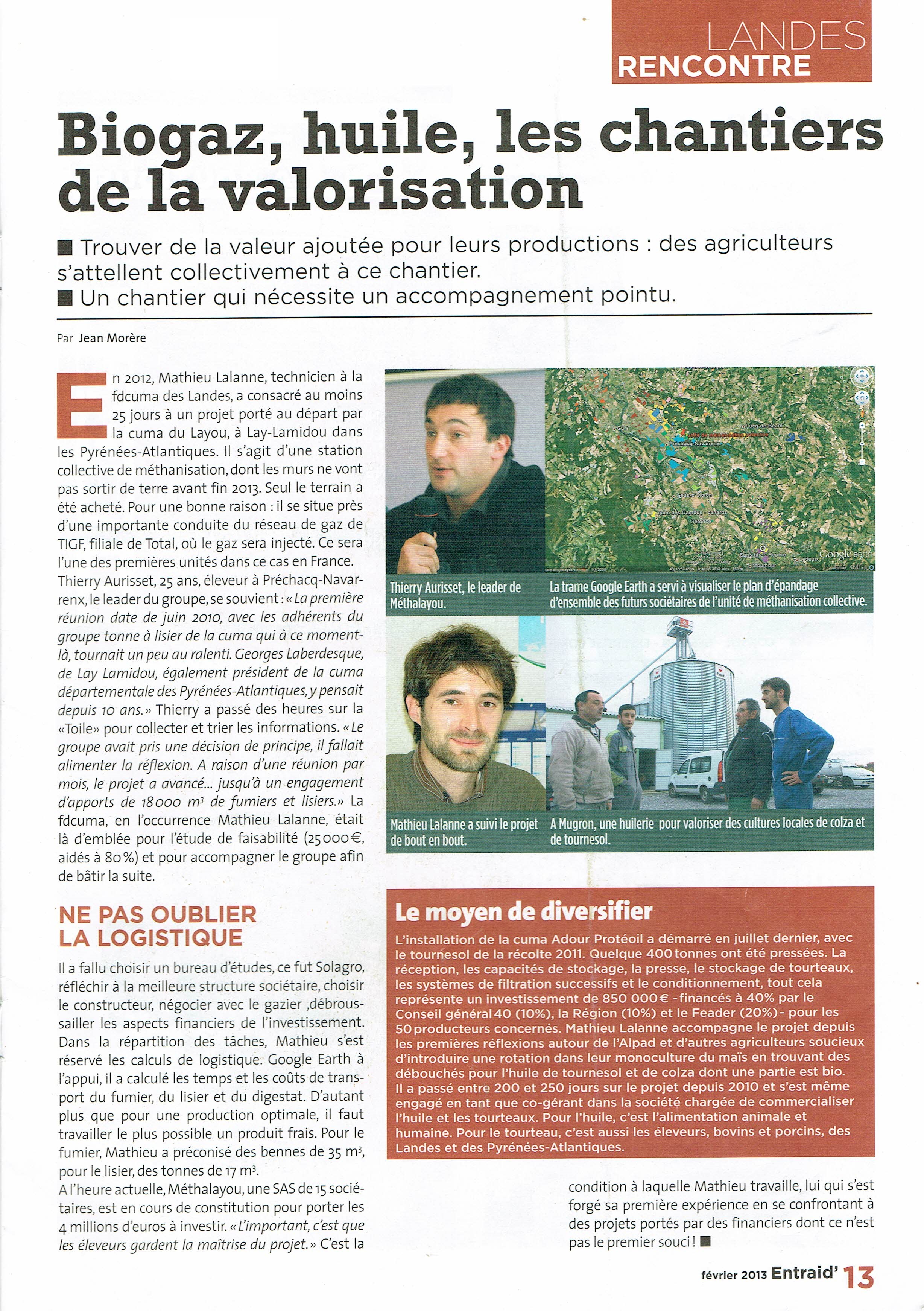 Impulsion de 3 projets de méthanisation agricoles collectifs : Méthalayou, Méthajoos, CUMA Vallée des Lons (projet qui verra le jour sous forme individuelle)
